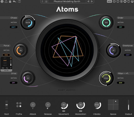 Atoms takes it even further. Its six main parameters can be automated with a selection of powerful motion options to add extra life. This lets you create soundscapes that are constantly shifting and re-generating, like a natural organism.